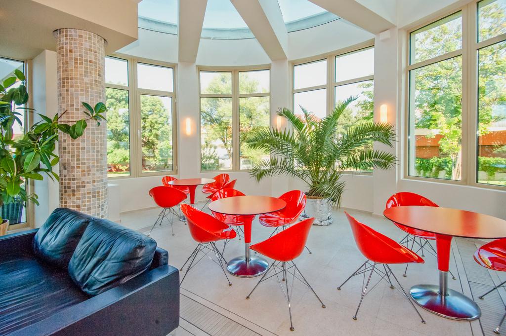 | Klimatizovaná vstupní hala s recepcí, výtah, restaurace s terasou,