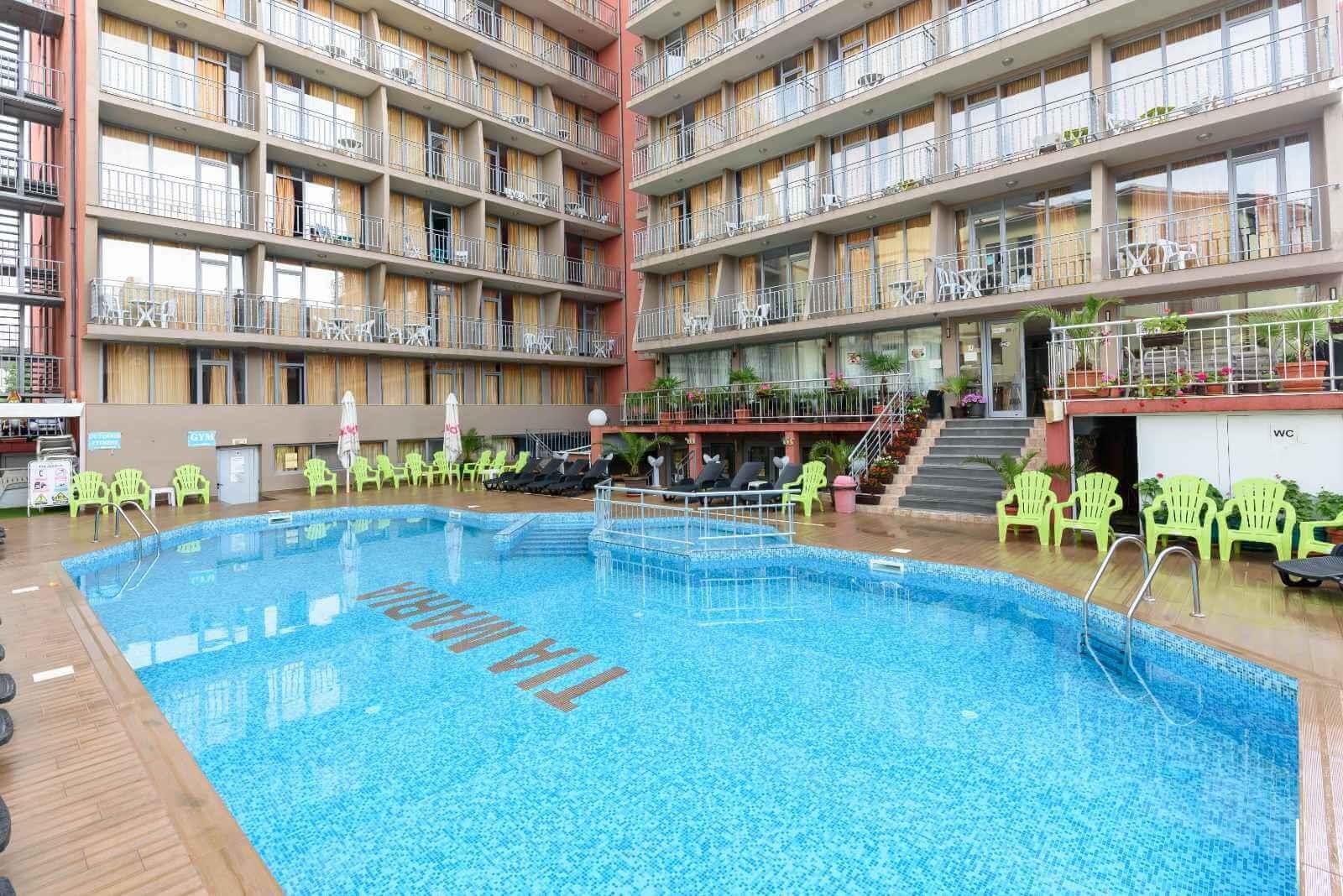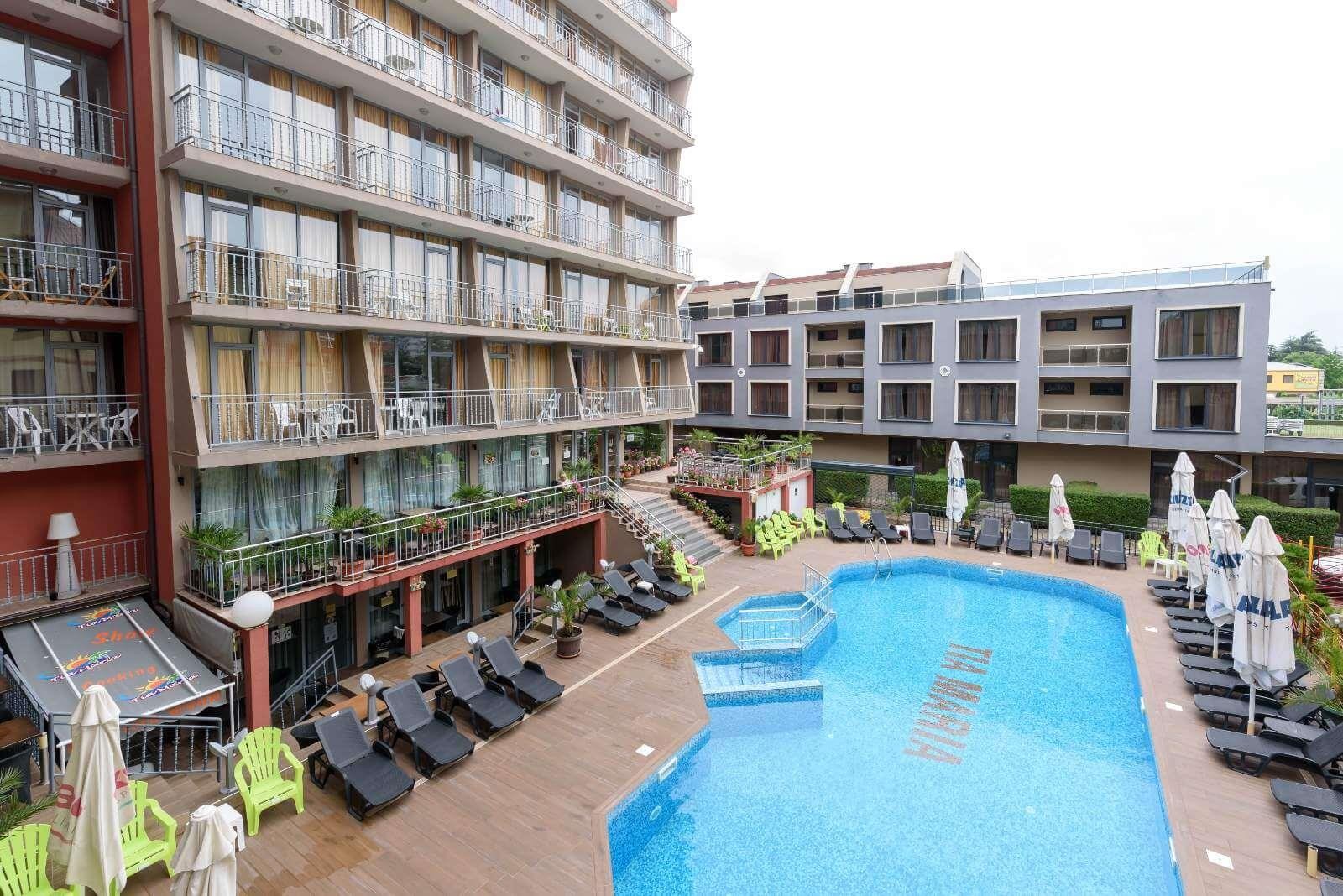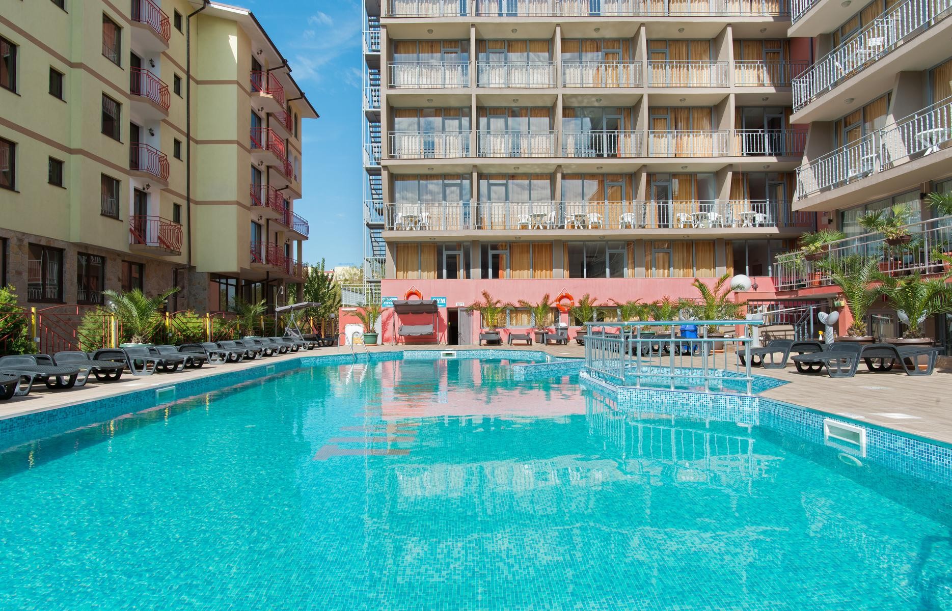Hotel je situován v jižní části rušného letoviska Sluneční pobřeží cca 10 minut pěšky od písečné pláže. Nachází se v blízkosti centra s velmi dobrou dostupností dalších atraktivních míst na pobřeží. Klienti jistě ocení dostatečně prostorné a komfortně zařízené pokoje, osobitý design, centrální klimatizaci hotelu i možnost připojení na internet. Nedaleko hotelu se nachází supermarket a autobusová zastávka. Hotel je vhodný pro méně náročné klienty.