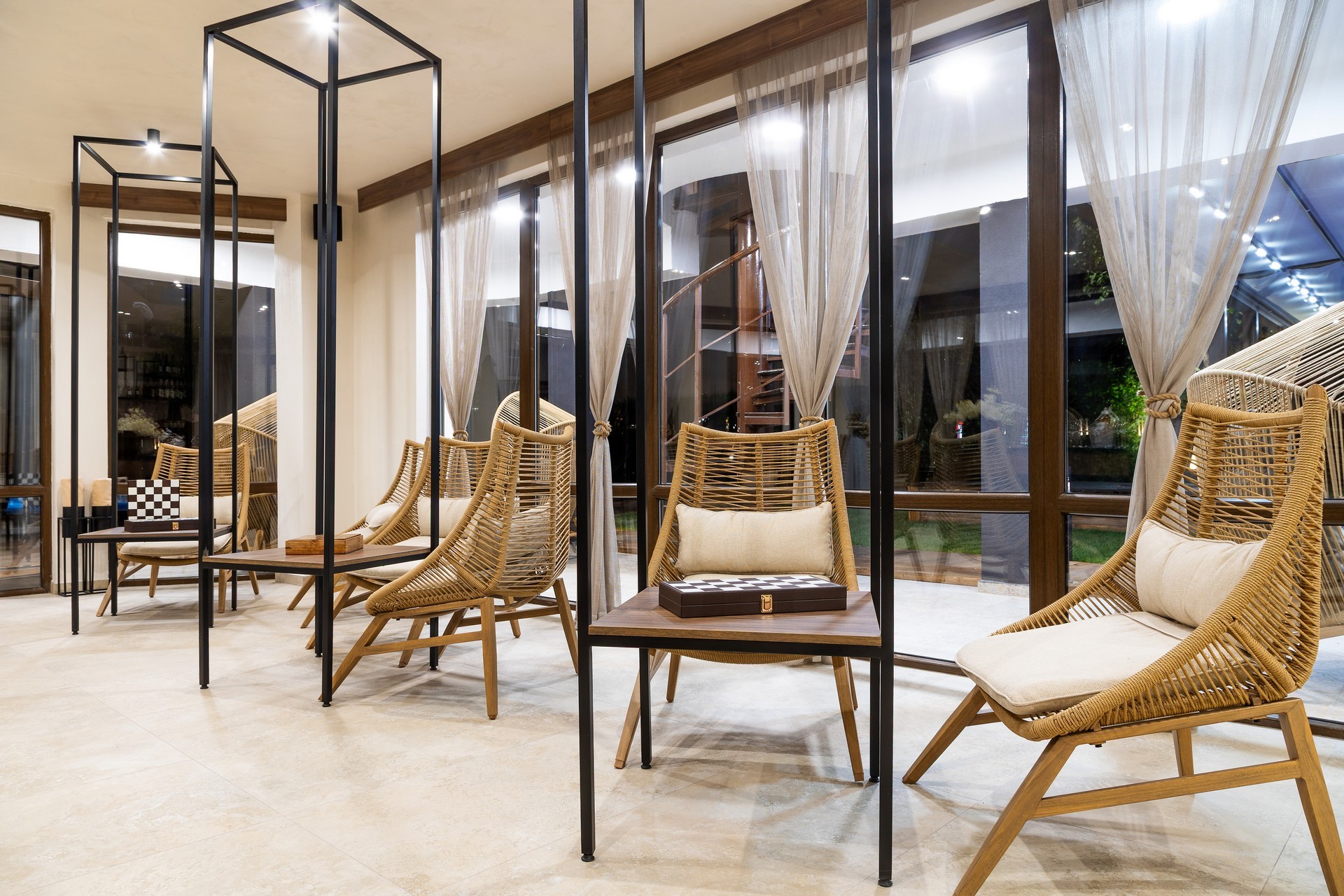 Vstupní hala s recepcí, restaurace, lobby bar, bar u bazénu, lounge bar, dva venkovní bazény