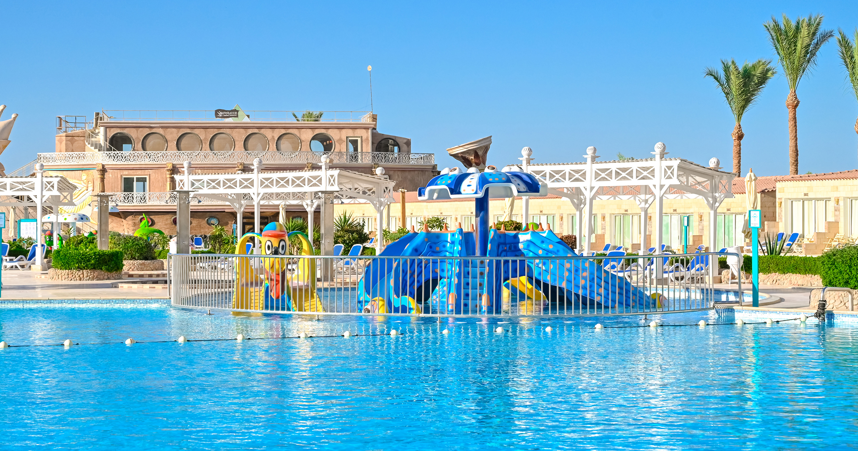 - 6 venkovních bazénů, 1 z ních pouze pro dospělé a 3 bazény pro děti