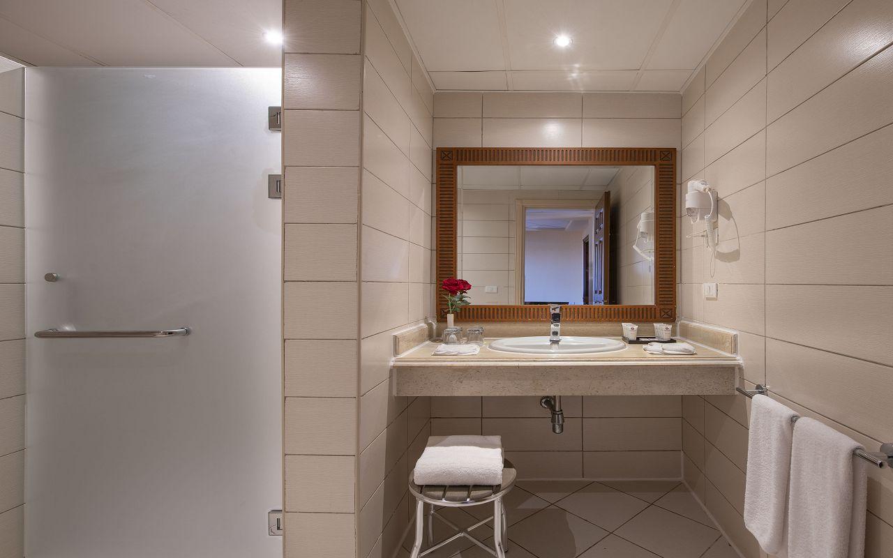 One bathroom. Televize: Zahrnuto Trezor na pokoji: Zdarma Telefon: Zahrnuto Sprcha: Zahrnuto Minibar: Zdarma Fén: Zahrnuto Klimatizace: Zahrnuto Terasa / balkon: Zahrnuto Sada na kávu a čaj: Zahrnuto Velikost: 80 Množství: 94 Maximální počet hostů na pokoj (včetně dětí): 4 |