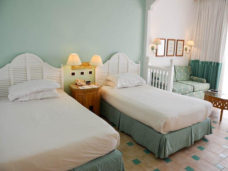 moře. Pokoj má manželskou postel nebo dva jednolůžka (většinou v