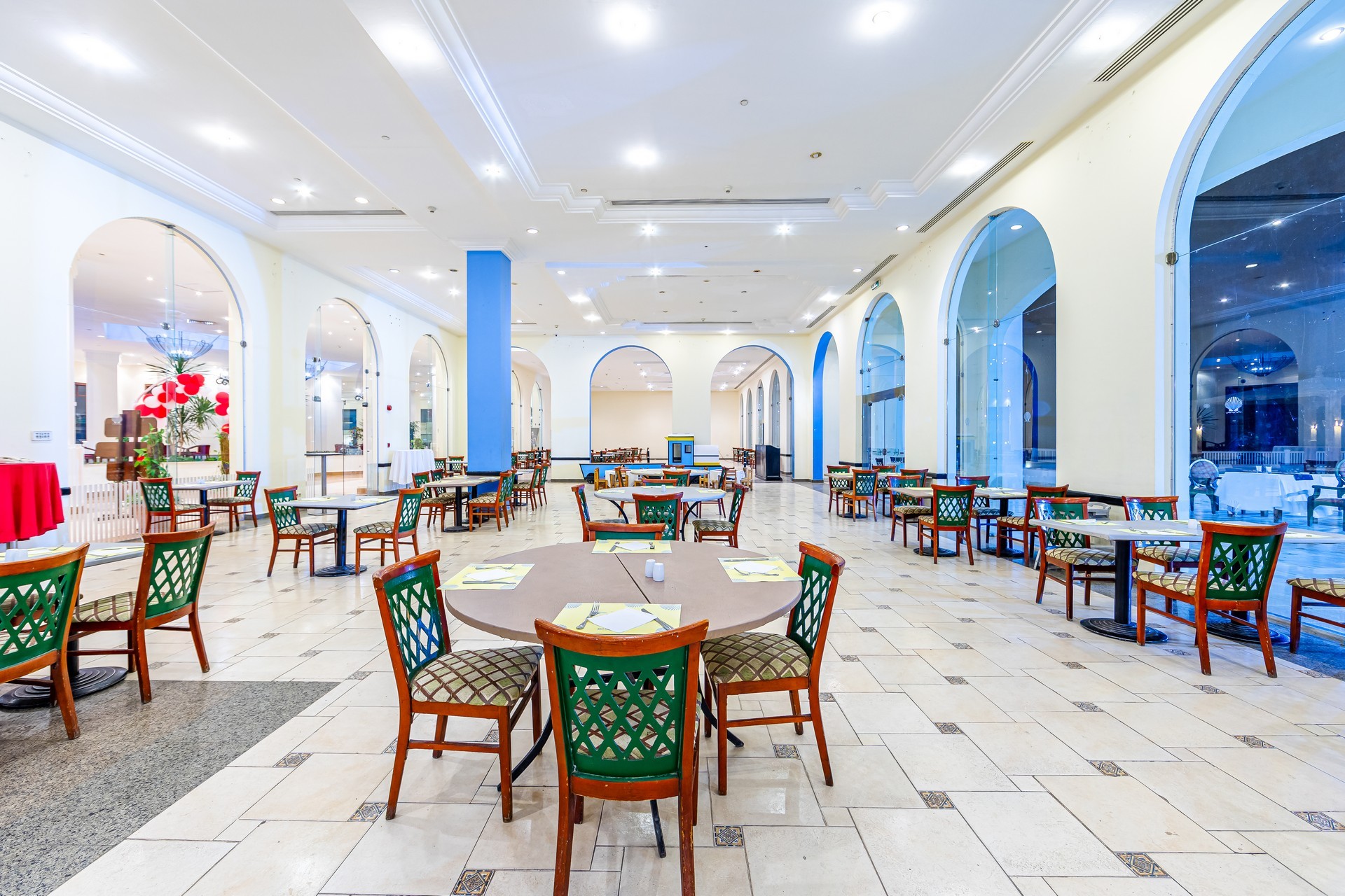 Vstupní hala s recepcí, hlavní restaurace, restaurace á la carte (asijská, italská)- zdarma, rezervace nutná, lobby bar, bar u bazénu, bar na pláži, několik bazénů, lehátka, slunečníky a osušky zdarma, miniklub, dětský bazén, obchod se suvenýry.