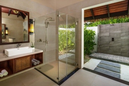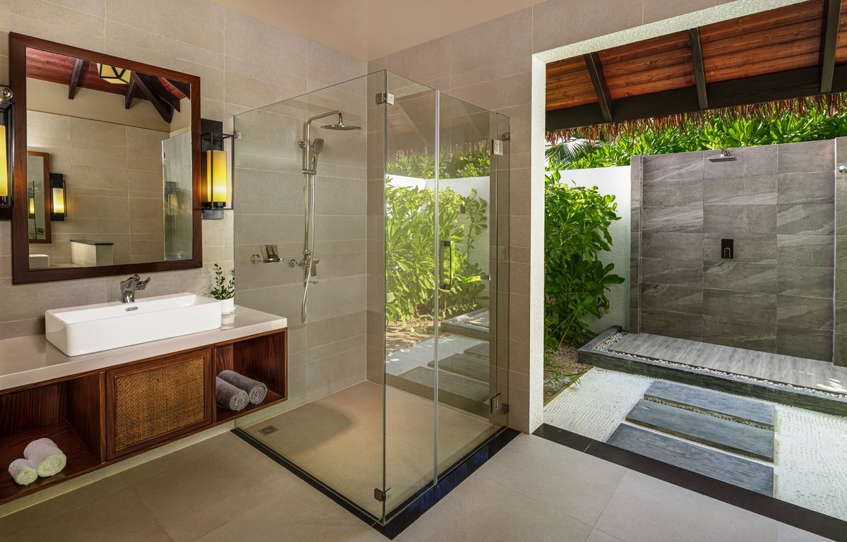 Vila overwater duplex s privátním bazénem a transferem rychločlunem má stejné vybavení jako beach villa, jedná se o samostatnou vilku umístěnou na moři s přímým vstupem do laguny, s vlastním bazénkem na terase, vnitřní koupelnou, schody do ložnice v patře.