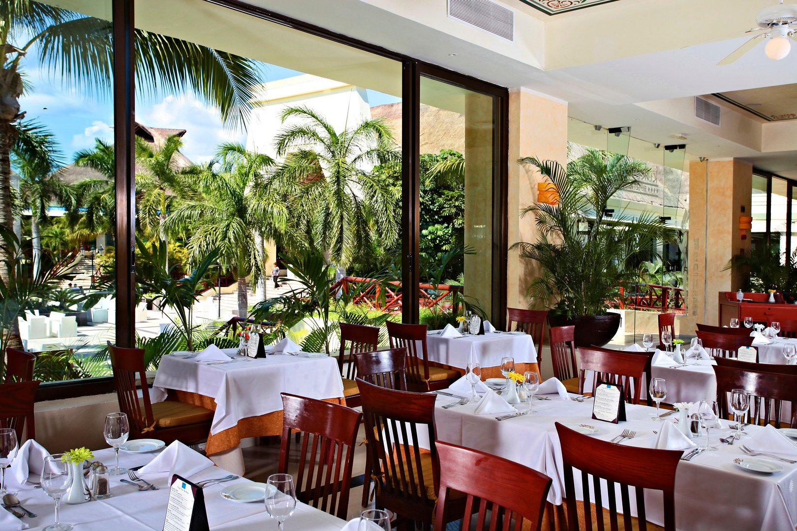 All inclusive zahrnuje snídaně, obědy a večeře, lehké občerstvení během dne, nealkoholické nápoje a místní i vybrané importované alkoholické nápoje v časech a místech určených hotelem. Možnost večeří (maximálně 3x za pobyt) v à la carte restauracích včetně à la carte restaurací v Bahia Principe Grand Tulum. Dále 9 barů k dispozici.