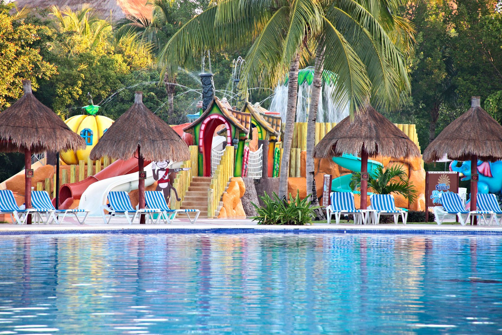 Vstupní hala, recepce, 1080 pokojů v 3 patrových budovách v tropické zahradě, 2 bazény, vodní park pro děti, 10 restaurací a 9 barů. Dále prádelna, lékárna, noční klub a kasino. WiFi zdarma v lobby. Areálem hotelu jezdí vláček.