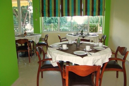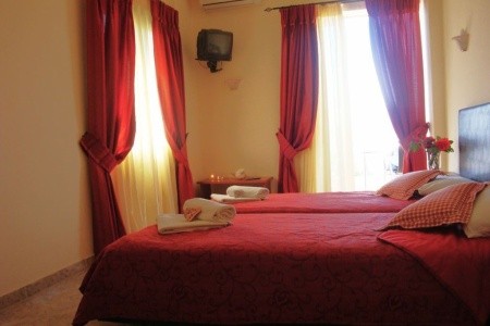 | Jednopatrová vilka má prostorná studia v prvním patře a přízemí. Ze všech studií je krásný výhled na moře. Studia mají dvě lůžka, některá možnost přistýlky (pevné lůžko), a jsou vybavena koupelnou (sprcha, WC), kuchyňským koutem (včetně vařiče, základního nádobí a ledničky), sejfem (za příplatek), klimatizací (za příplatek), Wi-Fi a balkónem. |