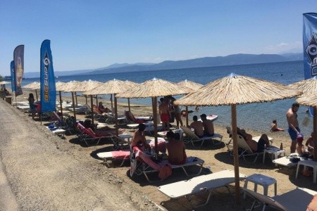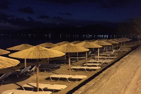 | Krásná rozlehlá písčito-oblázková pláž Potali s možností pronájmu lehátek a slunečníků je vzdálená asi 1 minutu chůze. Vstup do vody je kamenitý. |