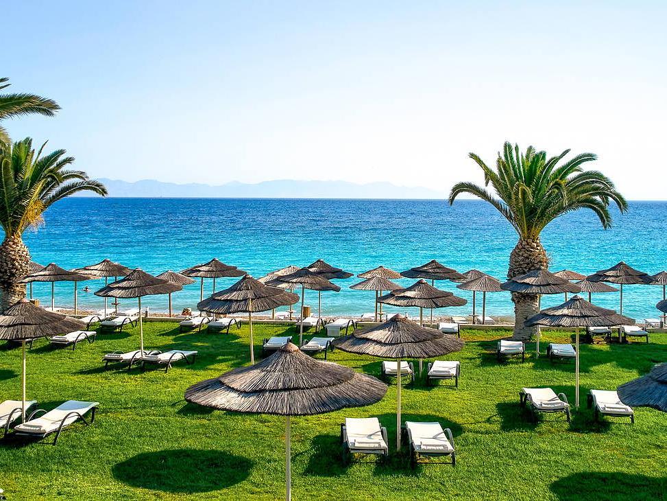 pláže v letovisku Ixia na řeckém ostrově Rhodos. Hotel nabízí