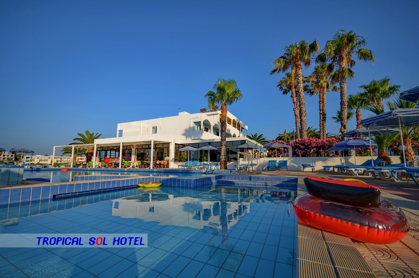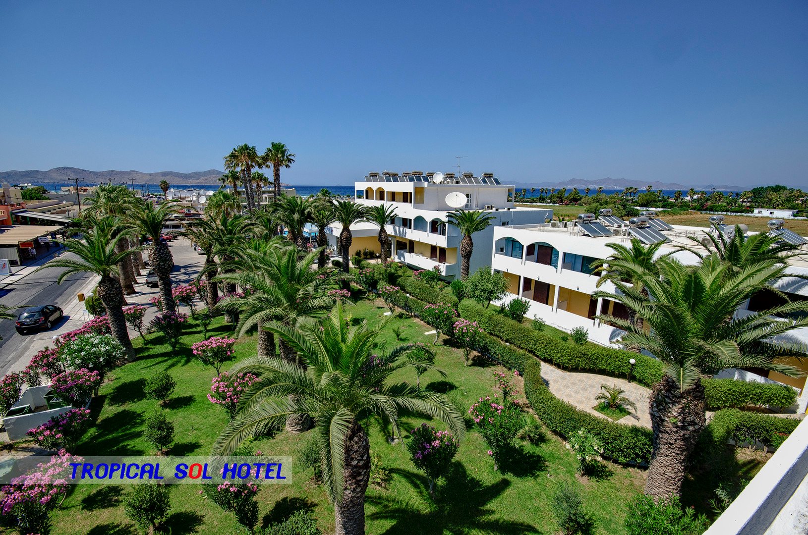 V blízkosti písečné pláže v Tigaki leží plážový hotel Tropical Sol. Nejbližší město je Kos. V okolí hotelu se nabízejí nejrůznější nákupní možnosti a také je zde supermarket. V blízkosti hotelu se nachází diskotéka. Z hotelu se můžete dostat k následujícím turistickým zajímavostem: Asklepeion. Letiště Kos je vzdáleno přibližně 16 km od hotelu.