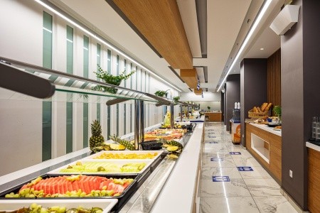 | Služby all inclusive zahrnují plnou penzi formou bufetu (snídaně od 7:30 do 10:00 h, obědy od 12:15 do 14:15h, večeře 19:30 do 21:30h), odpolední občerstvení, neomezenou konzumaci vybraných alkoholických a nealkoholických nápojů místní výroby v době od 11:00 do 23:00 h. |
