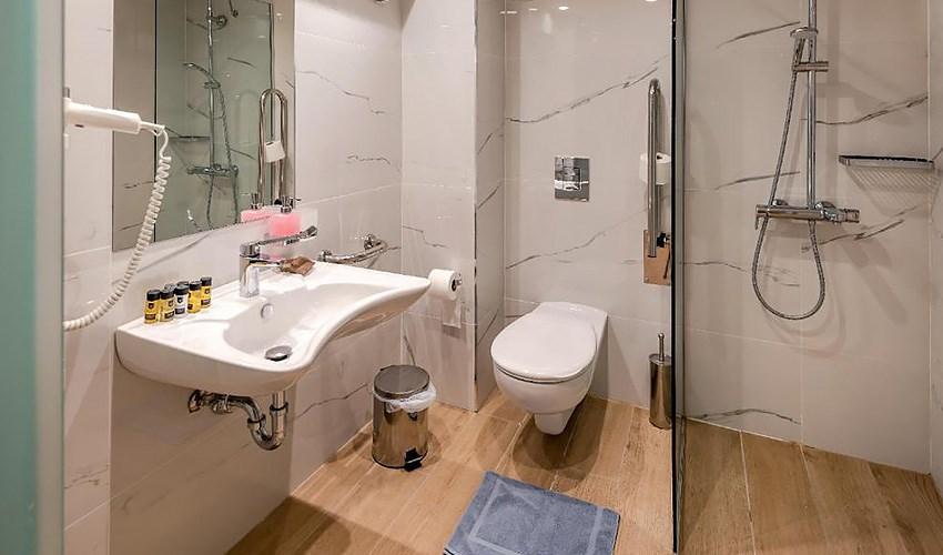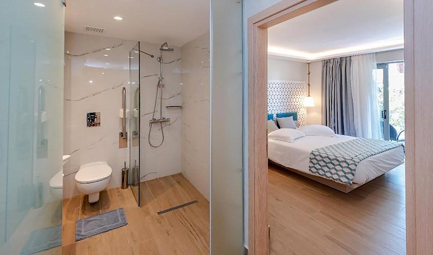 města Kos, nabízí moderně zařízené pokoje v modrobílých barvách. K