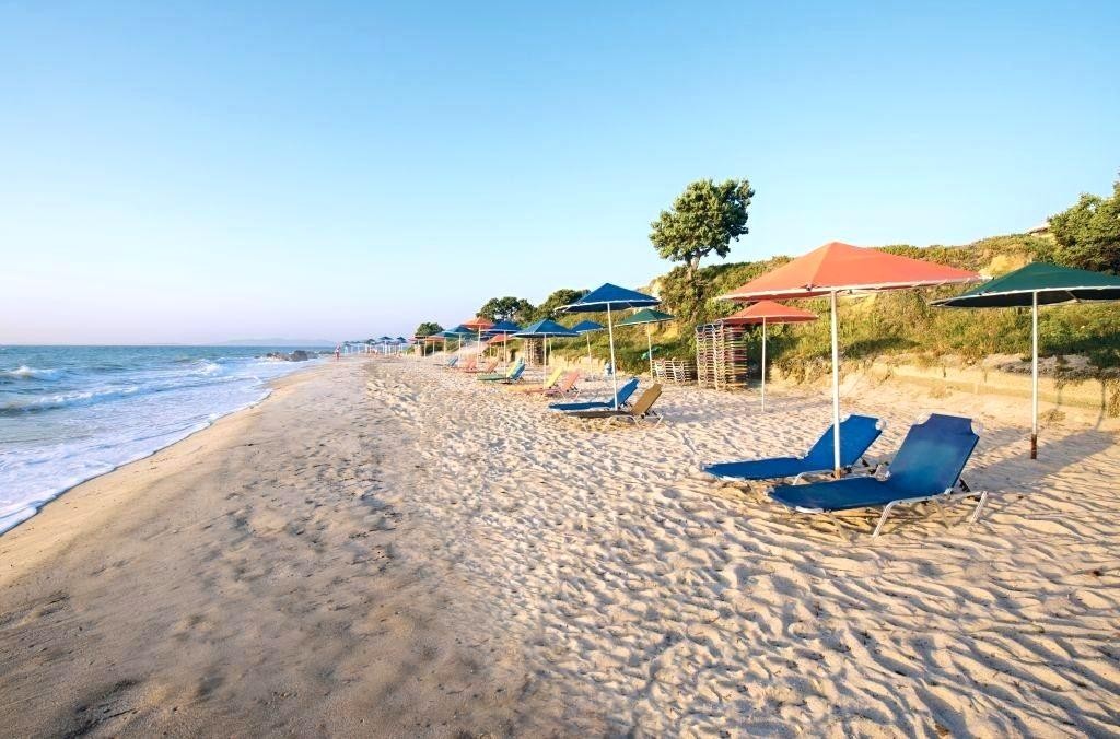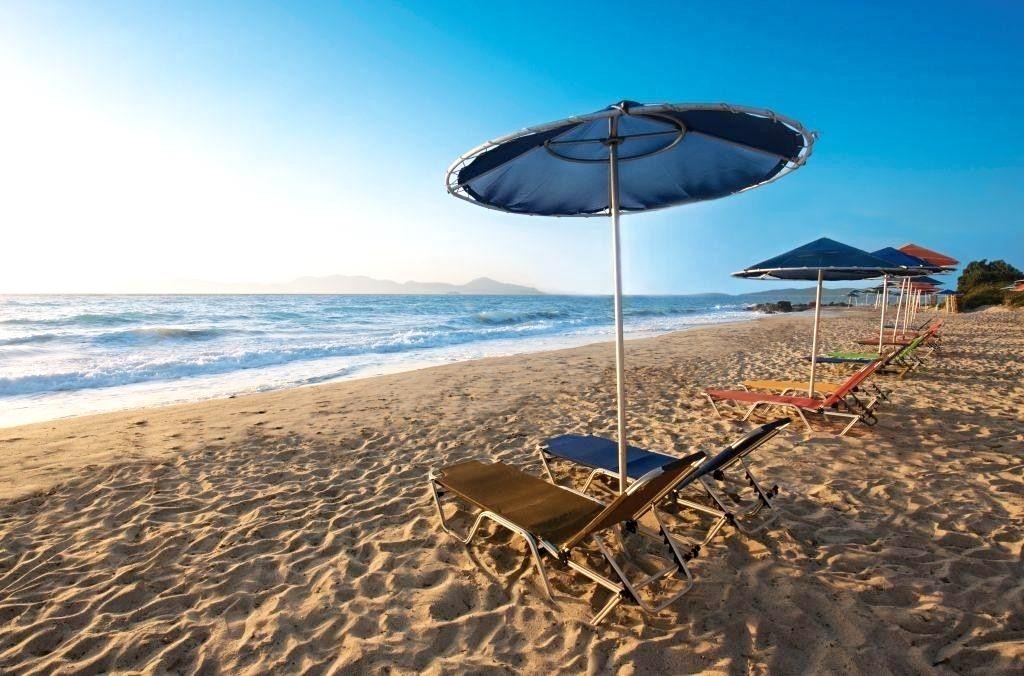 Písečná pláž přímo u hotelu. Lehátka, slunečníky a osušky zdarma.