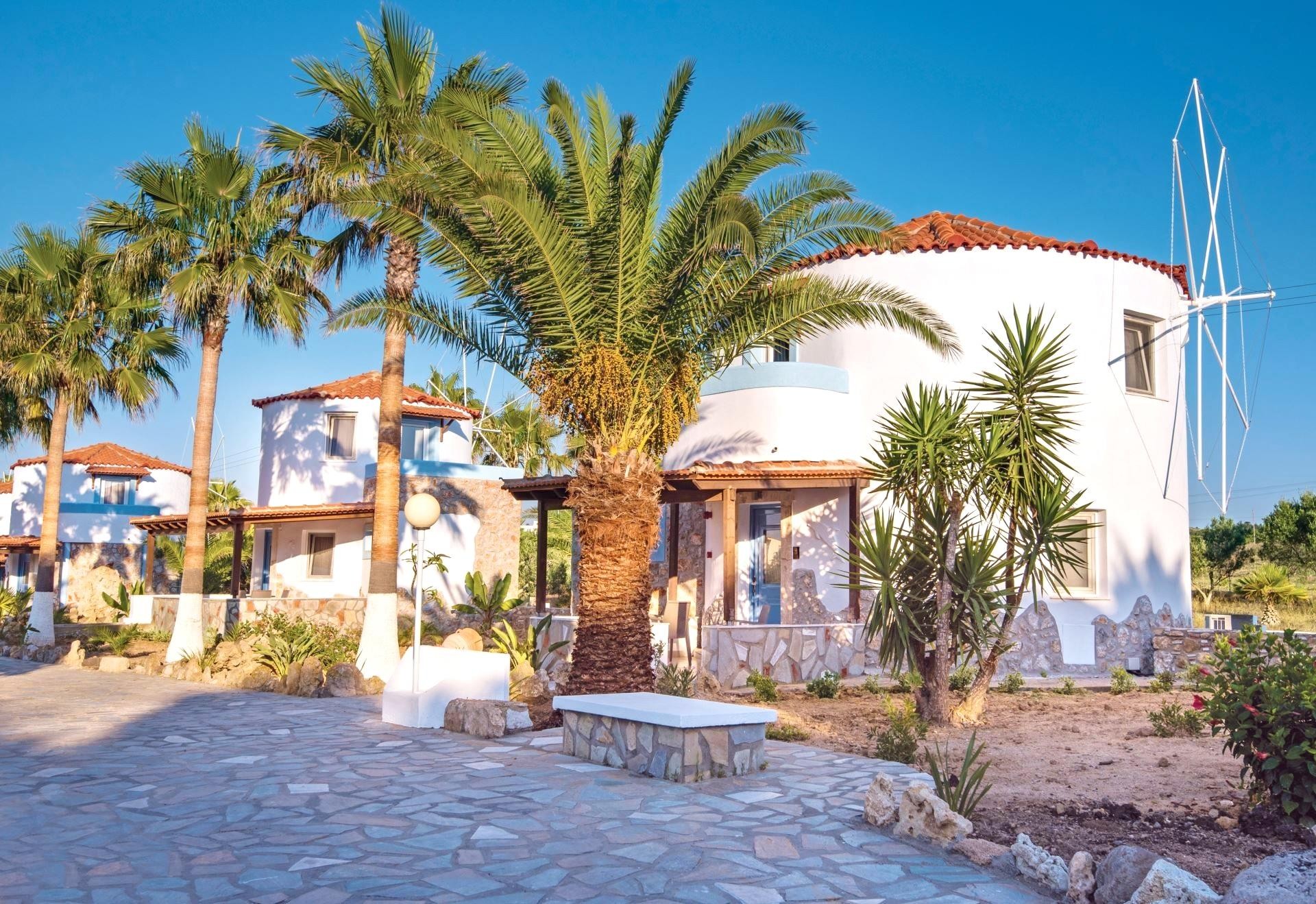 - Windmill dům: koupelna a obývací pokoj v přízemí, ložnice v patře, 2× TV/Sat, 2× klimatizace, set na přípravu kávy a čaje. Ubytování v atypických domech ve tvaru "větrného mlýnu".