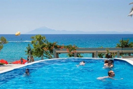 | Penzion Akti leží přímo na pláži s hrubším pískem, přibližně 1,5 km