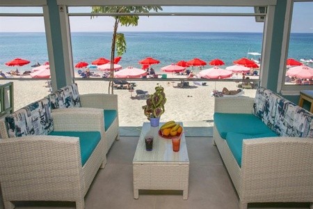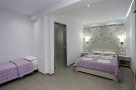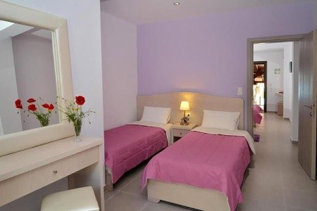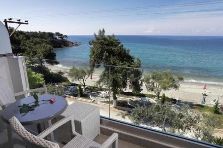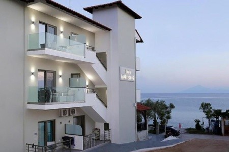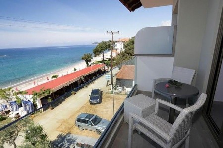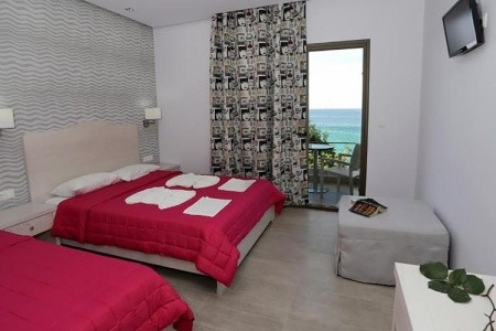 | Příjemné ubytování v řeckém stylu ležící přímo u pláže s hrubším