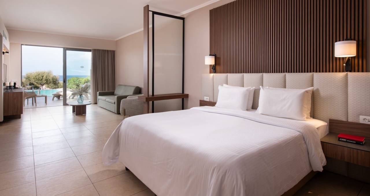 - Junior Suite (až pro 4 osoby) s výhledem na moře (cca 45 m²)