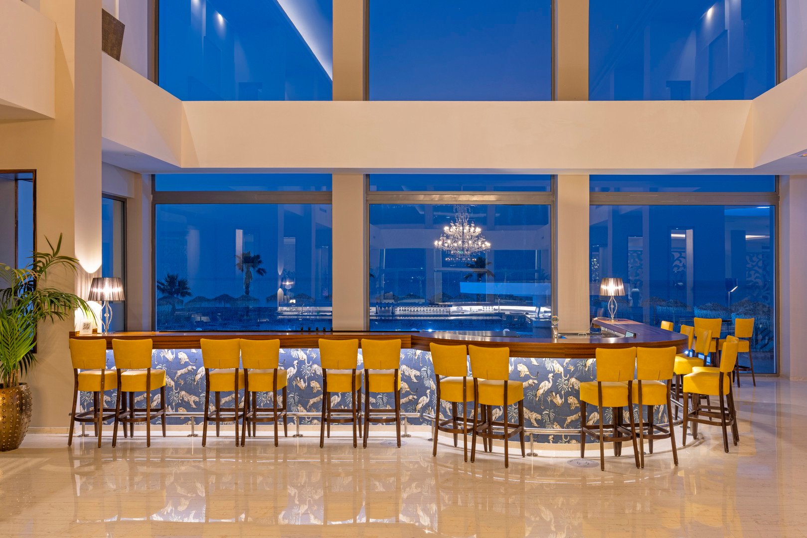 24 h recepce, úschovna zavazadel, WiFi, v celém areálu hotelu, hlavní restaurace Gaia, Aura restaurace u bazénu (10:00 - 18:00), restaurace á la carte (Fos - kreativní, Sushi, Aura - řecké speaciality), hlavní bar (10:00 - 1:00), Sfera bar u bazénu (10:00 - 18:00), Aura bar u bazénu (10:00 - 21:30), bar 11 (víno, šampaňské; bar pouze pro dospělé), 5 bazénů (4 venkovní, 1 vnitřní > 1 se slanou vodou, 1 dětský, osušky za deposit), parkoviště, minimarket, pronájem aut
