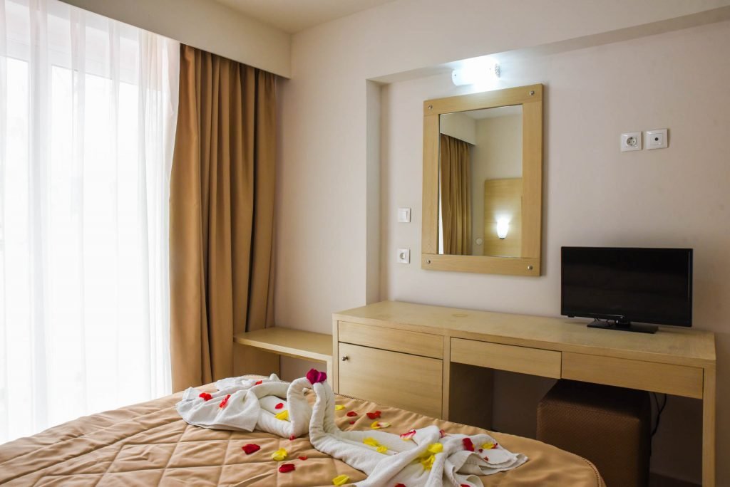 Vstupní hala, 24h recepce, automat s občerstvením na recepci, restaurace, TV místnost, obchod se suvenýry, krásně udržovaná zahrada, bazén, dětský bazén, bar u bazénu, terasa na slunění (lehátka, slunečníky zdarma; osušky za deposit 20 EUR ), WiFi zdarma