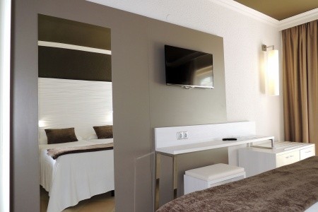 | standardní pokoje pro 2-4 osoby (2-3 postele nebo 2 x postel queen size), koupelna s WC, fén, klimatizace, SAT-TV, minibar, balkon (pokoje s výhledem na bazén za příplatek). Další variantou pokojů za příplatek jsou pokoje panoramic (přímý výhled moře) nebo pokoje solárium (výhled bazén/moře a s přímým přístupem na soukromou terasu sdílenou jen s malým počtem těchto pokojů). |