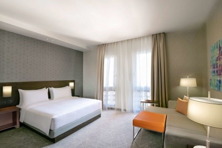 | Hotel Hyatt Place Dubai Wasl District je ideální volbou pro turisty, kteří míří do Dubaje za odpočinkem a poznáváním města. Nachází se ve čtvrti Deira, která je ideální pro ty, kdo chtějí zažít tradiční atmosféru Dubaje, ale zároveň mít blízko k hlavním turistickým atrakcím. V pěší vzdálenosti se nachází stanice metra Union, odkud se snadno dostanete například k mrakodrapu Burj Khalifa, nákupnímu centru Dubai Mall nebo na pláže u Jumeirah. Hotel nabízí pohodlné a moderně zařízené pokoje, které jsou ideální pro relaxaci po dni plném zážitků. Každý pokoj je vybaven klimatizací, Wi-Fi, chytrou TV a komfortní postelí. Pro chvíle odpočinku je k dispozici venkovní bazén se sluneční terasou nebo fitness centrum. Součástí hotelu je restaurace s mezinárodní kuchyní, kde si můžete dopřát skvělé snídaně nebo i večeře. V okolí najdete také řadu obchodů, kaváren a místních trhů, jako je slavný zlatý a kořeněný trh (Gold & Spice Souk), kam se dostanete krátkou jízdou nebo procházkou. Hyatt Place Dubai Wasl District je ideální pro ty, kdo hledají pohodlné, čisté a cenově dostupné ubytování se strategickou polohou, díky které mohou snadno objevovat krásy Dubaje, ať už jde o moderní čtvrti nebo tradiční arabskou kulturu. |
