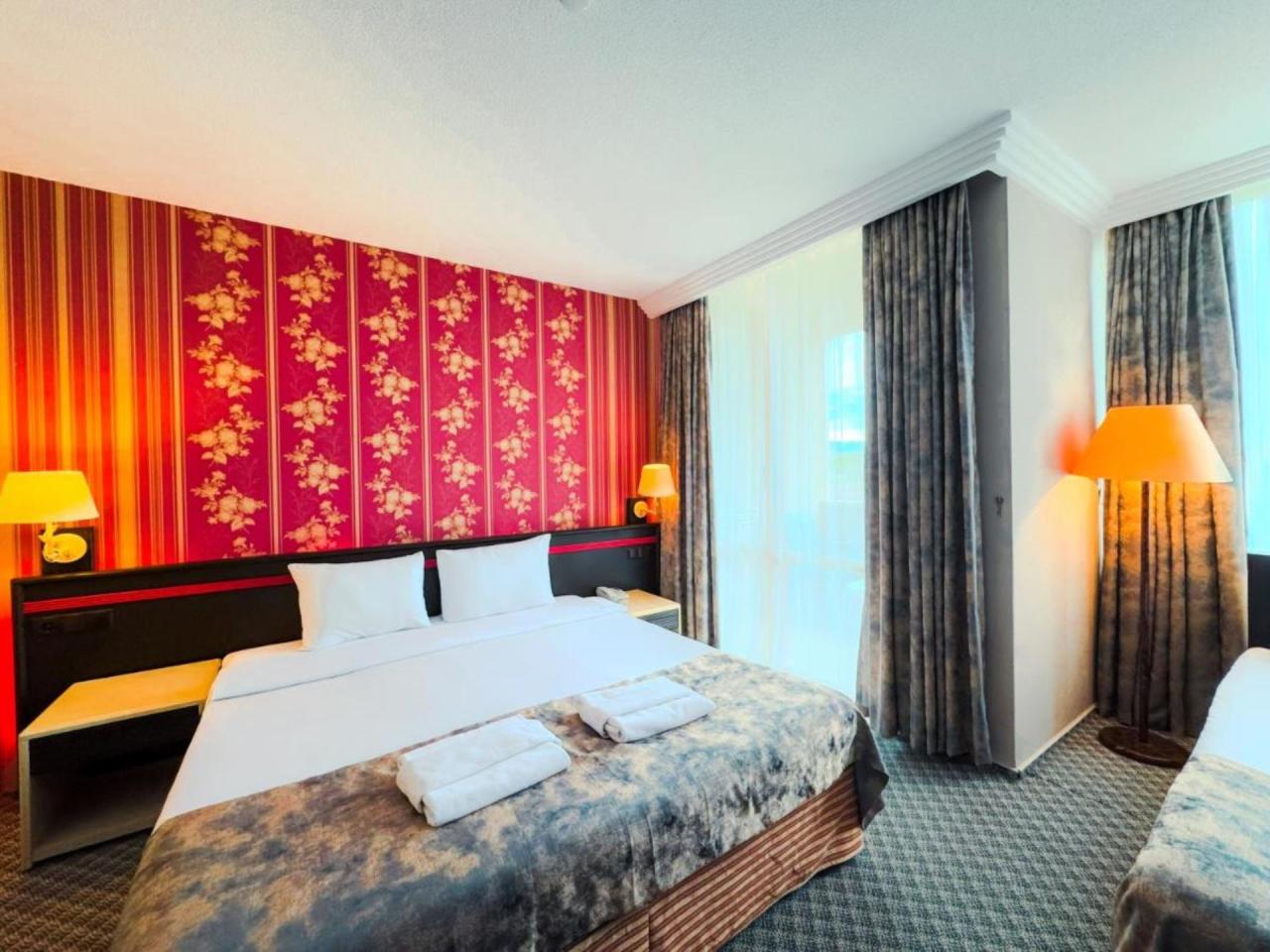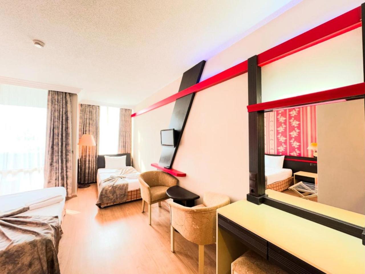 • v hlavní budově • klimatizace: centrálně řízená • trezor: za poplatek • minibar: nealkoholické nápoje, voda • telefon, • Wi-Fi: za poplatek • satelitní TV • sprcha • WC • vysoušeč vlasů • balkon nebo terasa |