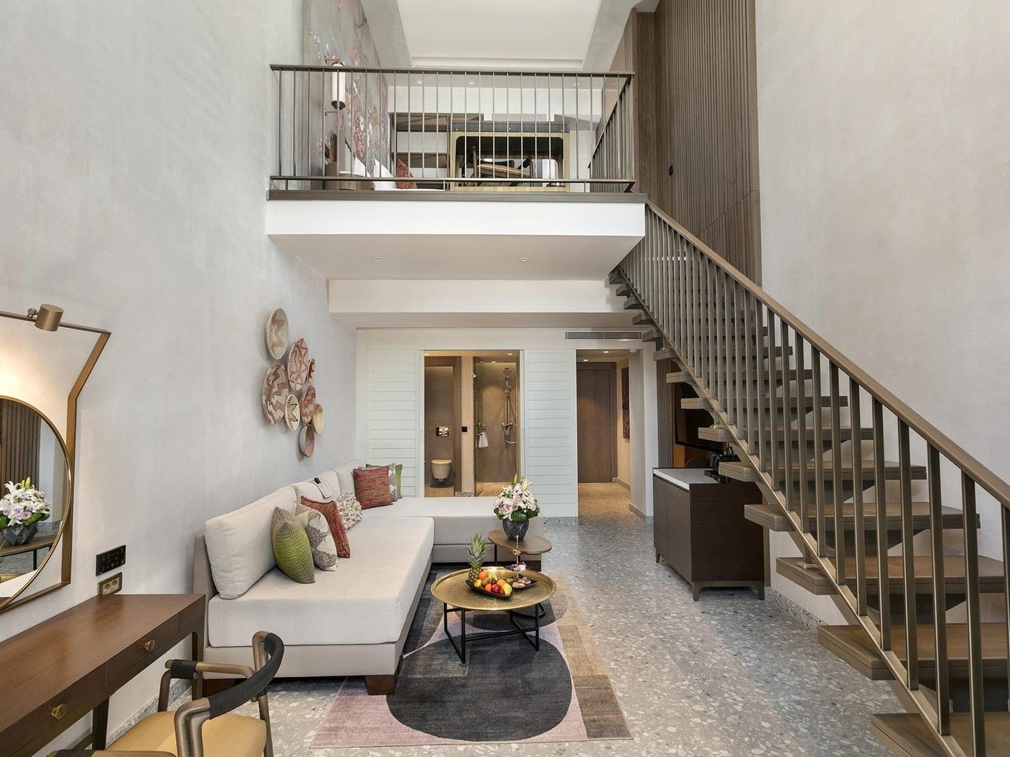 Family Room: Tento rodinný pokoj je vhodný pro čtyři osoby a zahrnuje oddělený obývací prostor a ložnici. Má minibar, chytré ovládání funkcí, balkon, koupelnu s dešťovou sprchou a luxusní toaletní potřeby. Velikost pokoje je 70 m².