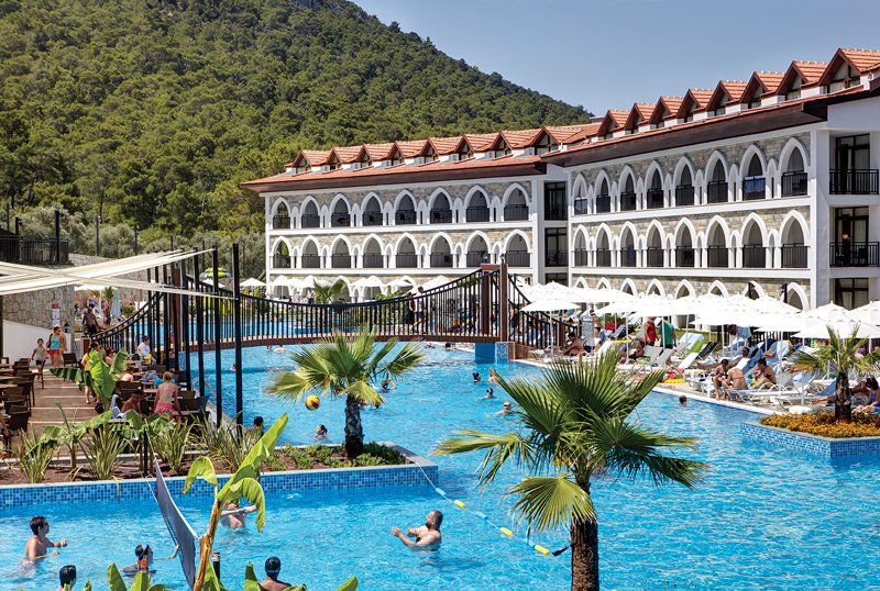 Komplex několika budov, recepce, restaurace, bary, výtah, WiFI v areálu hotelu zdarma. Venkovní bazén se 2 skluzavkami, dětský bazén se skluzavkou, lehátka a slunečníky u bazénu zdarma.