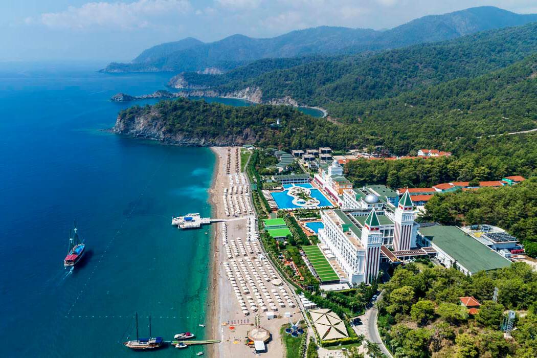 | Hotel vyniká svým umístěním mezi úpatím zelení porostlých hor a malebné zátoky s dlouhou a širokou pláží. Skutečně velice rozlehlý areál nabízí hostům výjimečnou vybavenost, vybranou gastronomii, vlastní Spa a wellness či vlastní aquapark. Lze říct, že hotel dokáže skutečně uspokojit všechny kategorie návštěvníků. |