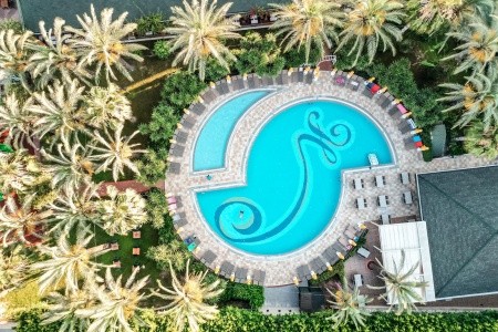 zahrady a širokou škálu vybavení včetně bazénů, stravovacích