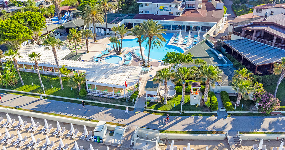 Hotel u písečné pláže, cca 25 minut chůze od historického města Side (cca 3 km), centrum města Manavgat cca 9 km, nákupní možnosti v okolí hotelu, mezinárodní letiště Antalya cca 65 km.