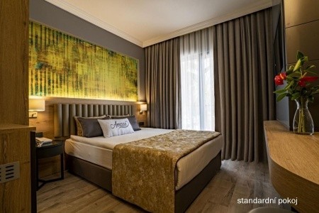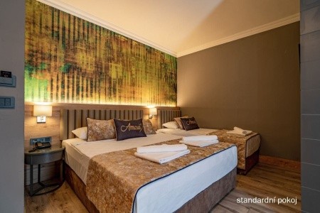 Hotel Side Amour **** prošel v roce 2021 kompletní moderní rekonstrukcí a jeho největší předností je skvělá poloha poblíž historického centra Side. Antické památky, nákupní promenáda a staré centrum je od hotelu Side Amour vzdáleno pouze 800 m. Hotelová písečná pláž (lehátka, slunečníky a plážový bar v rámci all inclusive zdarma) je snadno dostupná hotelovým minibusem, který jezdí zdarma v pravidelných intervalech až do 18:00 hod. Dovolená v hotelu Side Amour je ideální pro klienty, kteří milují antické památky, křivolaké uličky a nekonečné nákupní možnosti spolu s relaxací na pláži s jemným pískem. Pokoj pro 2 osoby (P 2+1):standardně vybaven. Skládá se z jedné místnosti, dvou pevných lůžek nebo dvoulůžka s možností přistýlky. Jeho součástí je TV/SAT, trezor (2 EUR/den), telefon, minibar (za poplatek), set na přípravu kávy/čaje, fén, koupelna se soc. zařízením, individuální klimatizace, posezení na balkoně nebo terase. Pokoj pro 3 - 4 osoby (P 3+1):standardně vybaven. Skládá se z jedné místnosti, pevného lůžka, manželského dvoulůžka a přistýlky pro děti do 10 let (formou rozkládacího gauče). Jeho součástí je TV/SAT, trezor, telefon, minibar (za poplatek), set na přípravu kávy/čaje, fén, koupelna se soc. zařízením, individuální klimatizace, posezení na balkoně nebo terase. Vybavení hotelurecepce, hlavní restaurace, bar u bazénu, bazén s oddělenou dětskou částí, lehátka s matracemi a slunečníky u bazénu i na pláži zdarma, bar na pláži (nealko nápoje a pivo zdarma), fitness. Za poplatek: wi-fi připojení (10 EUR/týden), čistírna, hlídání dětí, lékař, wellness, masáže, salon krásy, obchody se suvenýry. Stravováníall inclusive. Snídaně, obědy, večeře formou bufetu. Odpolední káva/čaj se sušenkami. Neomezené množství alkoholických a nealkoholických nápojů místní výroby v době 10:00 - 23:00 v hotelových barech a restauraci. AI program nezahrnuje: importované a balené nápoje, džusy z čerstvého ovoce, některé druhy káv, restauraci á la carte. Vzdálenostipláž 1000 m (dostupná hotelovým minibusem zdarma v pravidelných intervalech během dne), nejbližší obchody do 250 m, historické centrum Side 800 m, letiště v Antalyi 65 km. Plážpísečná s pozvolným vstupem do moře. Lehátka a slunečníky k dispozici zdarma. Plážový bar zdarma (nealkoholické nápoje a pivo, lehké občerstvení). Plážové osušky oproti vratné kauci. Zábava a sport- zdarma: stolní tenis, šipky, šachy, stolní