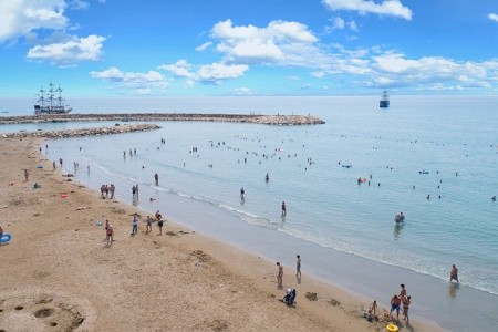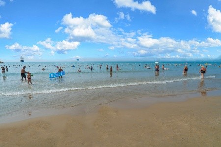 soukromá písčitá pláž se nachází 260 metrů od hotelu lehátka, slunečníky a osušky na pláži zdarma, výměna osušek- za poplatek restaurace a bar na pláži |