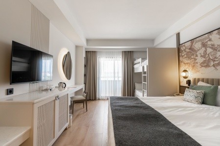 All inclusive, 10.00- 2400 Koncept zahrnuje snídaně, pozdní snídaně, obědy a večeře formou bufetu, občerstvení během dne a večera, místní alkoholické (rakije, pivo, vodka, likéry, vína) a nealkoholické nápoje, 5 druhů koktejlů (10.00 - 24.00) A'la Carte restaurace zdarma 1 návštěva na základě