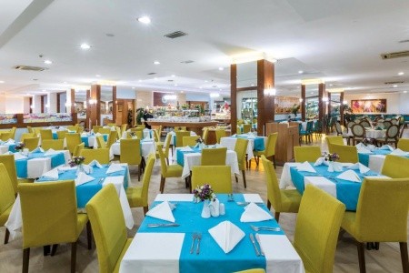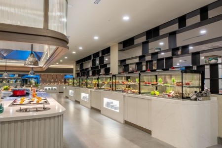 venkovní bazén, 450 m2 reklaxační bazén (16), 220 m2 bazén se skluzavkami, 65 m2 vnitřní bazén, 100 m2 (vyhřívaný) hlavní restaurace 2 restaurace A'la Carte rybí, turecká (na základě rezervace, jedna návštěva týdně zdarma) cukrárna 5 barů (disco bar - za poplatek) cukrárna Wi-Fi (zdarma, ve veřejných prostorách, u bazénu a na