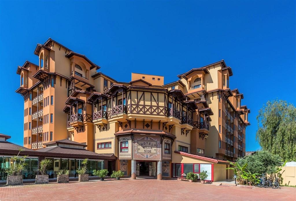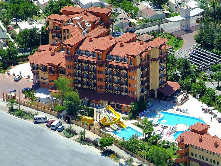 | Hotel se nachází na okraji letoviska Side ve vzdálenosti 200 m od krásné písečné pláže s lehátky a slunečníky zdarma a s nabídkou vodních sportů (za poplatek). Hostům je k dispozici vstupní hala s recepcí, Wi-Fi zdarma, restaurace, 3 a la carte restaurace v sousedním hotelu Villa Side Residance 5*(za poplatek), bar, bar u bazénu, bar na pláži (součást all inclusive), bazén s lehátky a slunečníky zdarma, bazén se skluzavkami, dětský bazén, dětské hřiště, herna, fitness, turecké lázně a sauna. Profesionální animační team nabízí pestré zábavní programy a miniklub (4−12 let) pro děti. Nedaleko hotelu naleznete obchodní centrum, restaurace i bary. Historické centrum Side je vzdálené 4 km (autobusová zastávka se nachází v blízkosti hotelu). Kvalitní hotel s výbornými službami je zárukou spokojené dovolené. |