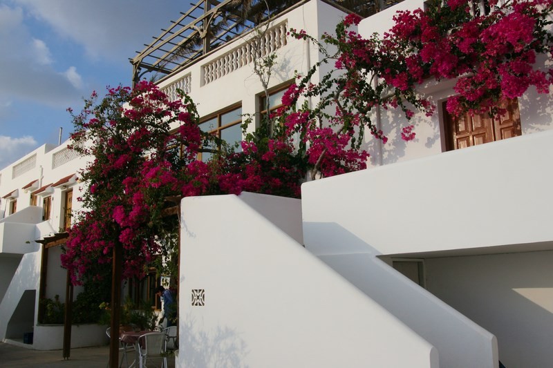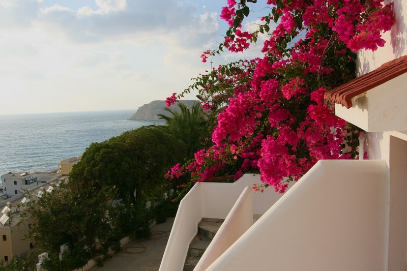 Bílá vilka zahalená do stále kvetoucí bouganvilie je postavena ve svahu nad krásnou pláží Frangolimnonas. Dostanete se na ni velmi rychle po zpevněné cestě vedoucí ze svahu okolo hotelu Sarris. Dostupné jsou i další krásné pláže, například na pláž Perdikis Potami, kde se můžete koupat bez plavek. První taverny jsou nedaleko a dva obchody jsou v centru letoviska Lefkos okolo krásné pláže s bílým pískem Gialou Chorafi.