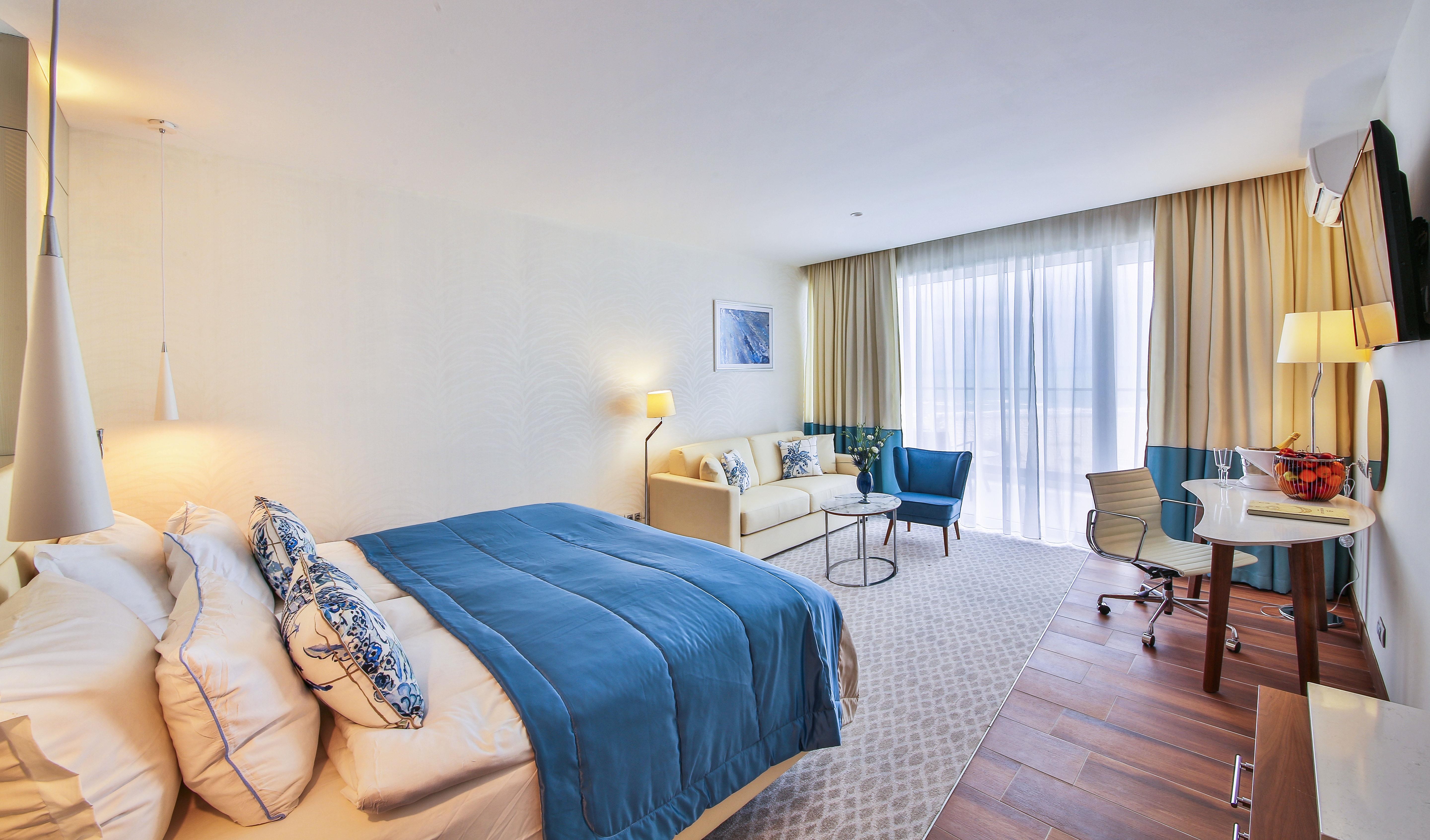 Dvoulůžkový pokoj: koupelna/WC (vysoušeč vlasů), klimatizace, TV/sat., telefon, minibar (za poplatek), trezor (za poplatek), set na přípravu kávy a čaje, balkon nebo terasa.