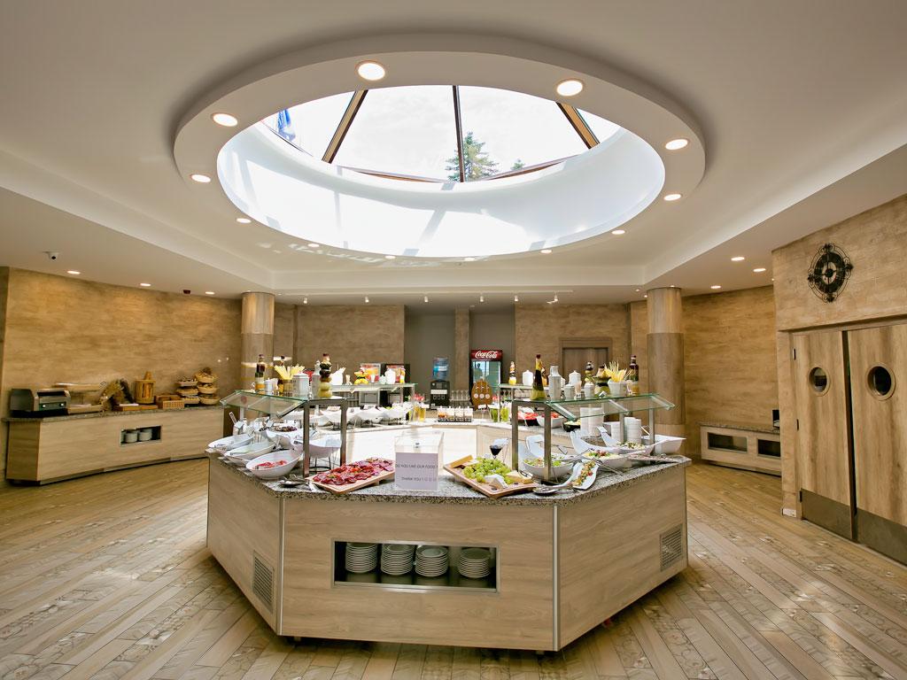 | Služby all inclusive zahrnují plnou penzi formou bufetu v hlavní restauraci (snídaně v době od 08:00 do 10:00 h, obědy v době od 12:00 do 14:00 h, večeře v době od 18:30 do 21:00 h), pozdní snídaně v době od 11:00 do 12:00 h, odpolední občerstvení v době od 15:00 do 17:00 h (zákusky, sendviče, ovoce), zmrzlinu v době od 11:00 do 21:00 h, neomezenou konzumaci vybraných místních alkoholických a nealkoholických nápojů v době od 10:00 do 23:00 h v looby baru. Uvedené časy jsou orientační. |