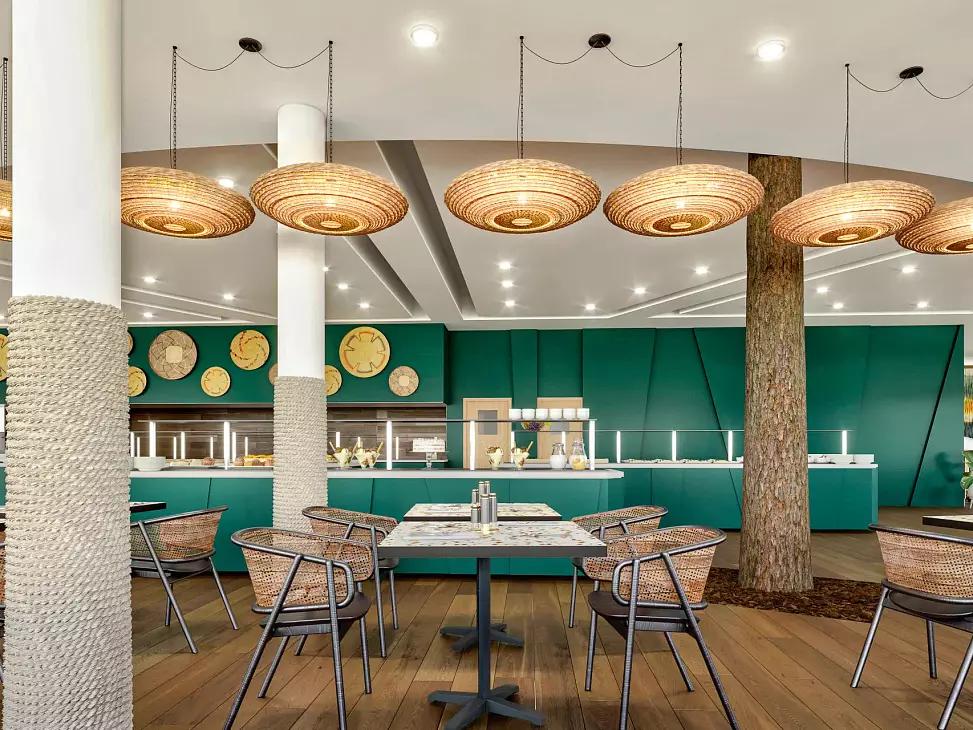 All Inclusive - hostům je k dispozici: hlavní restaurace Terra s mezinárodní kuchyní - snídaně (08:00-10:00) a večeře (18:30-21:30) formou bufetu, restaurace Kentia se zdravým občerstvením - obědy (12:00-17:00):Restaurace Jojo podává asijskou kuchyni - večeře (18:30-21:30) formou bufetu, restaurace Mare Nubium podává místní kuchyni - večeře (18:30-21:30) a'la carte (jedna večeře týdně, nutná rezervace předem). Dále lobby bar Agua (10:00-00:00) a noční klub The Spot (20:00-00:00) s živou hudbou.