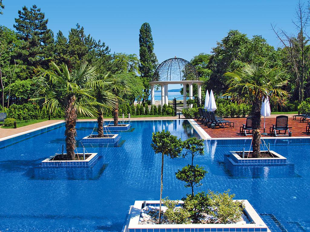 | Hotel je umístěn v klidném prostředí přímořského parku v krásné zahradě a v bezprostřední blízkosti pláže (cca 20 m). Nachází se cca 350 m od obchodního a společenského centra města Burgas a cca 12 km jižně od letiště Burgas. |