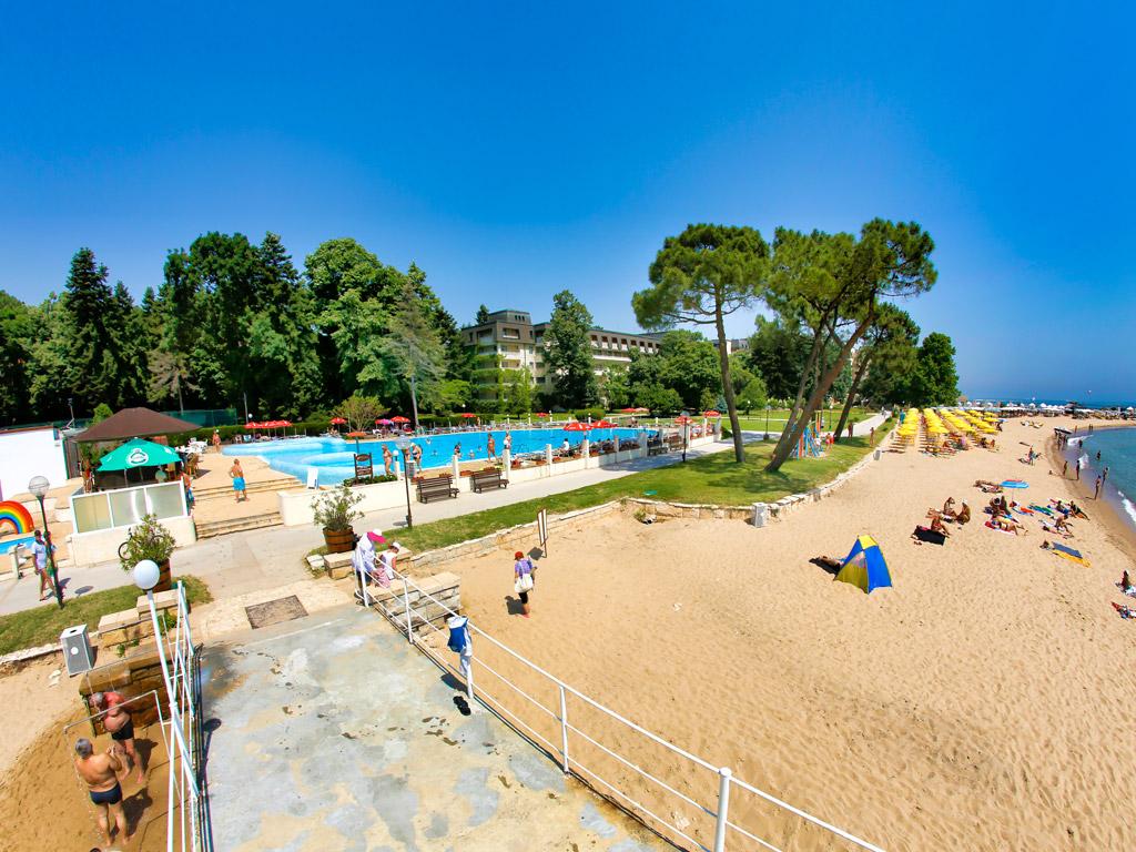 Hotel se nachází v bezprostřední blízkosti pláže (cca 20 m) a je vzdálen cca 500 m od centra letoviska Zlaté Písky. |