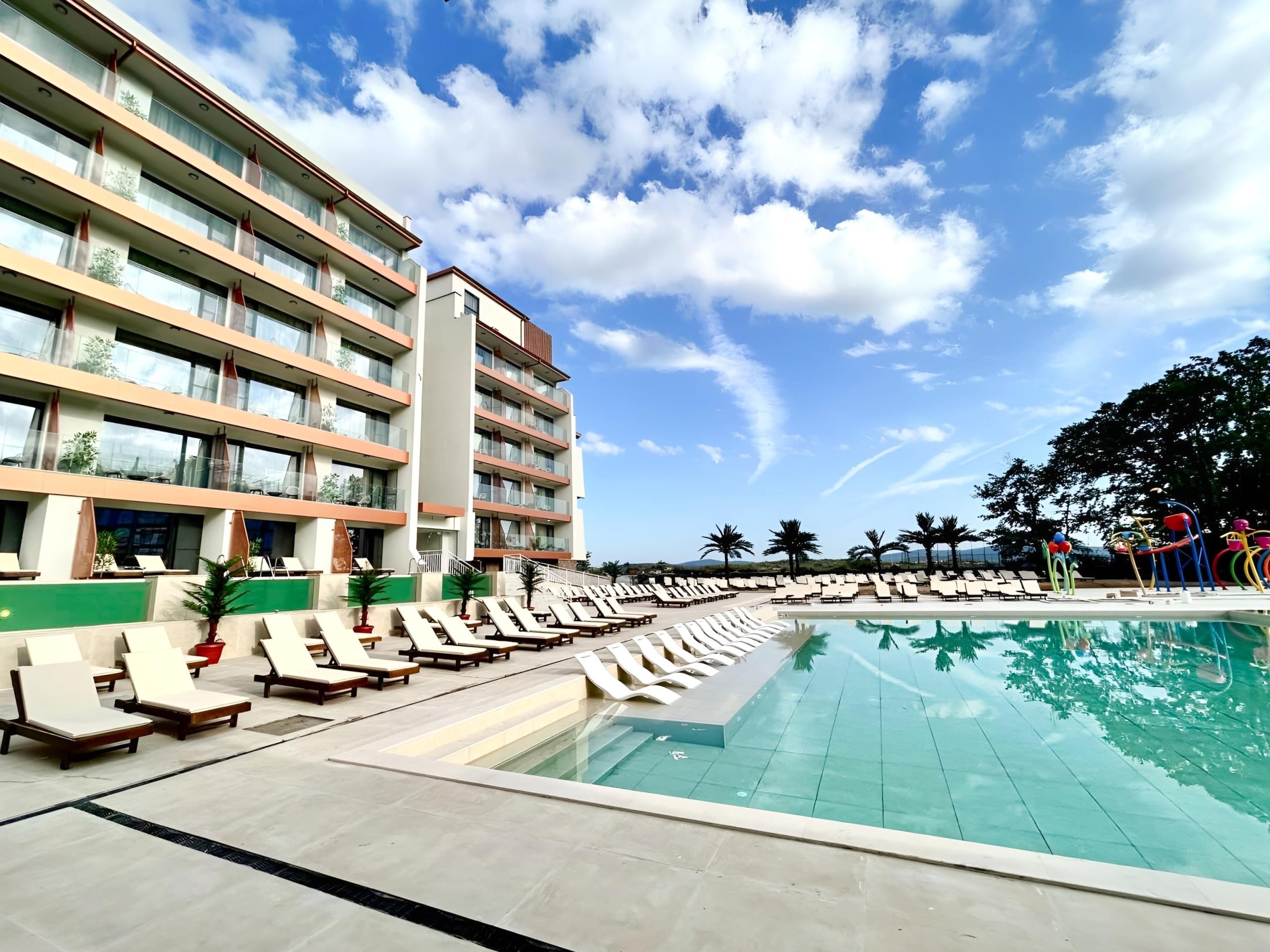 Tento nově zrekonstruovaný hotel se nachází v menším klidném letovisku Kiten přes písečné duny přímo u písečné pláže. Centrum letoviska s nákupními možnostmi je vzdálené 500 m, letiště Burgas 66 km.