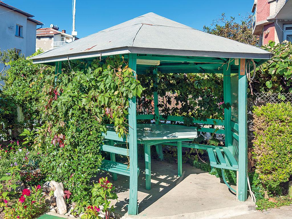 | Pro klienty penzionu je k dispozici stylové venkovní posezení v zahradě. |