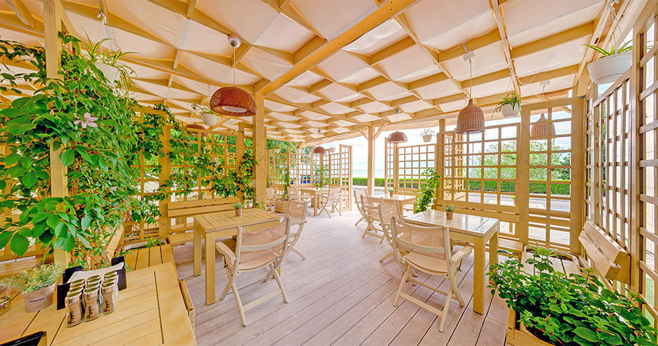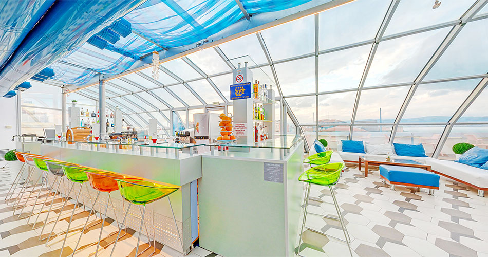 - 2 restaurace (hlavní a zcela nová střešní à la carte), bary (bar Marina a střešní bar)