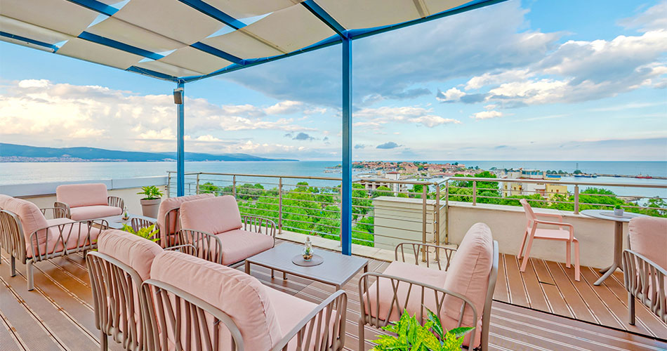 - Nově vybudovaný střešní bazén s výhledem na moře a do okolí