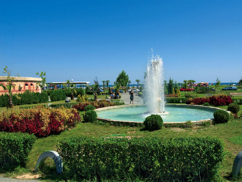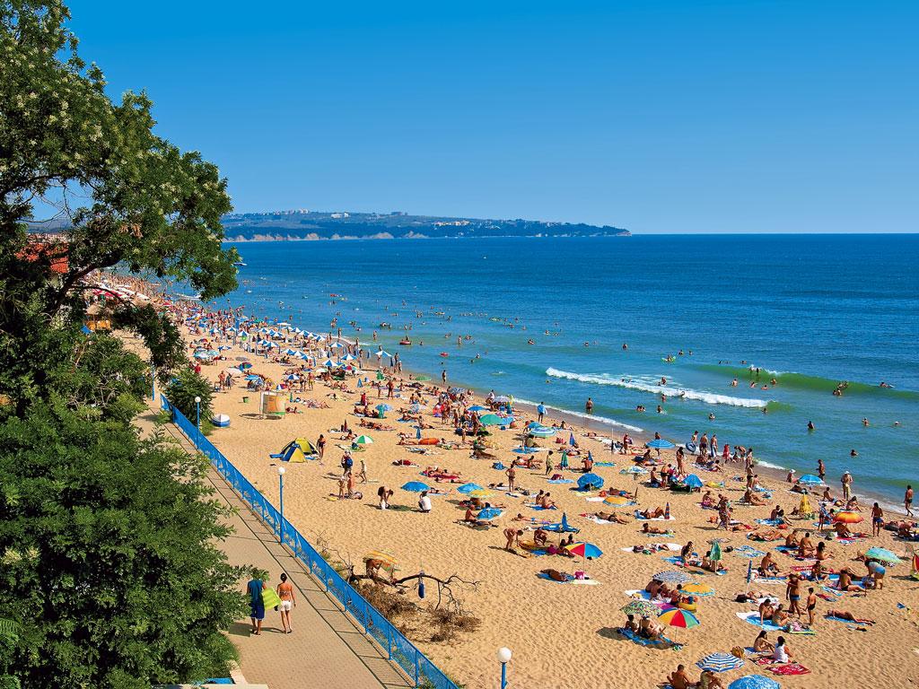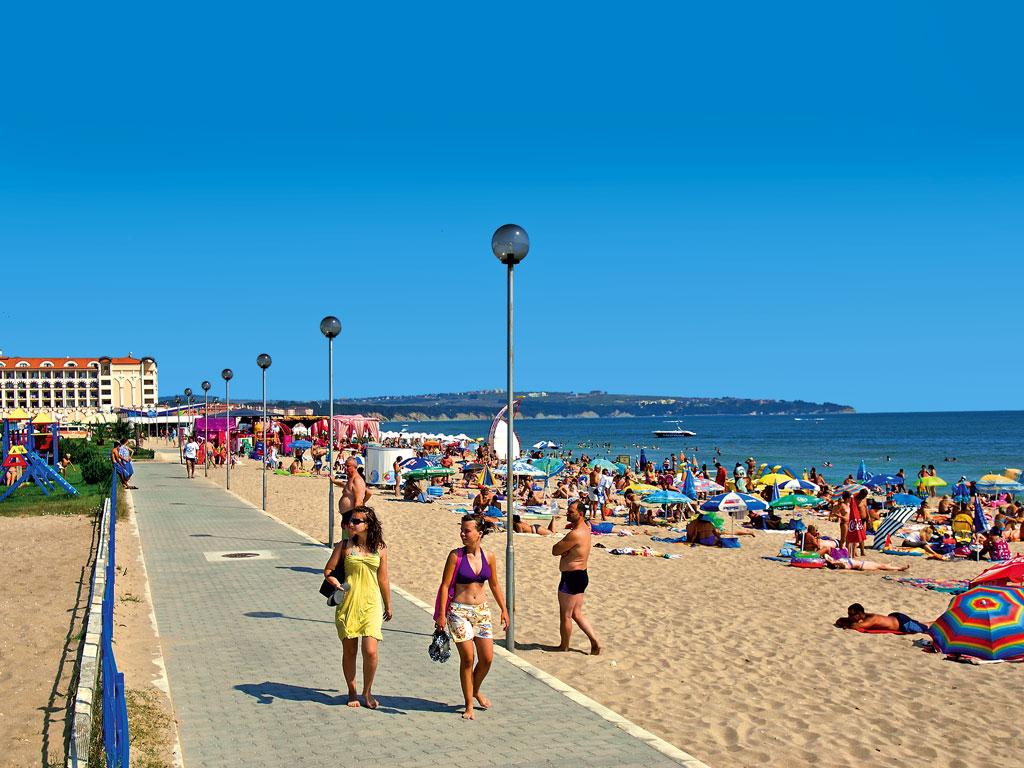 | Prostorná písčitá pláž dlouhá několik kilometrů a postupně se svažující do moře je vzdálená maximálně 600 m od penzionů. Pláž letoviska patří k jedné z největších a nejkrásnějších pláží černomořského pobřeží. Slunečníky, lehátka, vodní sporty, atrakce, občerstvení, bary a restaurace na pláži za poplatek. |