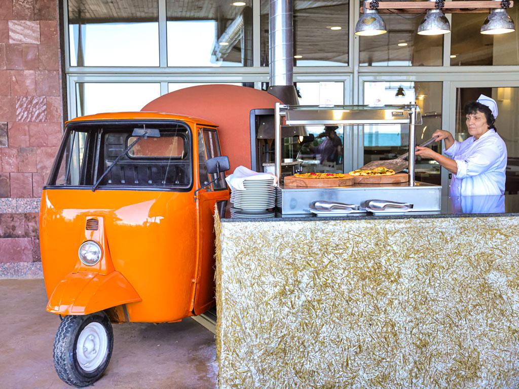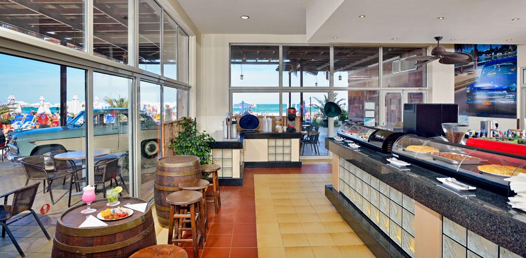 | Služby all inclusive zahrnují plnou penzi formou bufetu (snídaně od 7:30 do 10:00, obědy od 12:30 do 14:30, večeře od 18:00 do 21:00), občerstvení v italské restauraci v době od 12:00 do 14:00 h, občerstvení a zmrzlina v panini baru v době od 12:00 do 16:00 h, občerstvení v lobby baru v době od 10:00 do 12:00 h, od 15:00 do 17:30 h a 21:30 do 23:00 h, občerstvení v baru u bazénu v době od 10:00 do 12:00 h, občerstvení v paelladoru v době od 09:00 do 17:00 h, paella s mořskými plody v paelladoru v době od 19:00 do 21:00 h, tapas (malé občerstvení, degustační talířek či jednohubky) v baru Malecón v době od 17:30 do 23:00 h, občerstvení v baru Sofia v době od 21:30 do 23:30, večeře v bulharské, italské nebo rybí restauraci - místa nutno předem objednat, neomezenou konzumaci vybraných místních alkoholických a nealkoholických a teplých nápojů v lobby baru v době od 9:00 do 23:00 h, v panini baru v době od 12:00 do 16:00 h, v baru u bazénu v době od 9:00 do 17:00 h, v tapas baru (sangria, kubánské koktejly, točené pivo Cerveza) v době od 17:30 do 23:00 h, v baru Sofia od 20:00 do 23:00 h. V hlavní restauraci v době snídaně, oběda a večeře najdete dietní koutek (bezlepkové pečivo, veganské speciality a pod.) a baby koutek s kojeneckou stravou. Uvedené časy jsou orientační. |