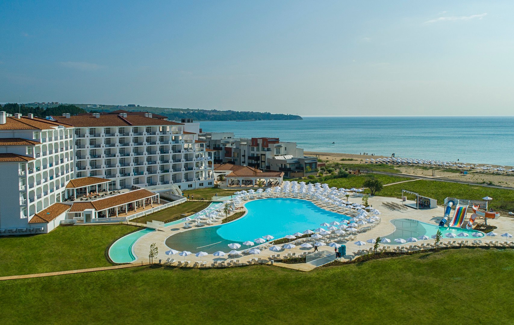 Moderně navržený hotel Sunrise Blue Magic resort, postavený v roce 2018 se nachází cca 3 km od centra města Obzor, pár kroků od jemné písečné pláže a cca 75 km od letiště Burgas. Shuttle bus do Obzoru.