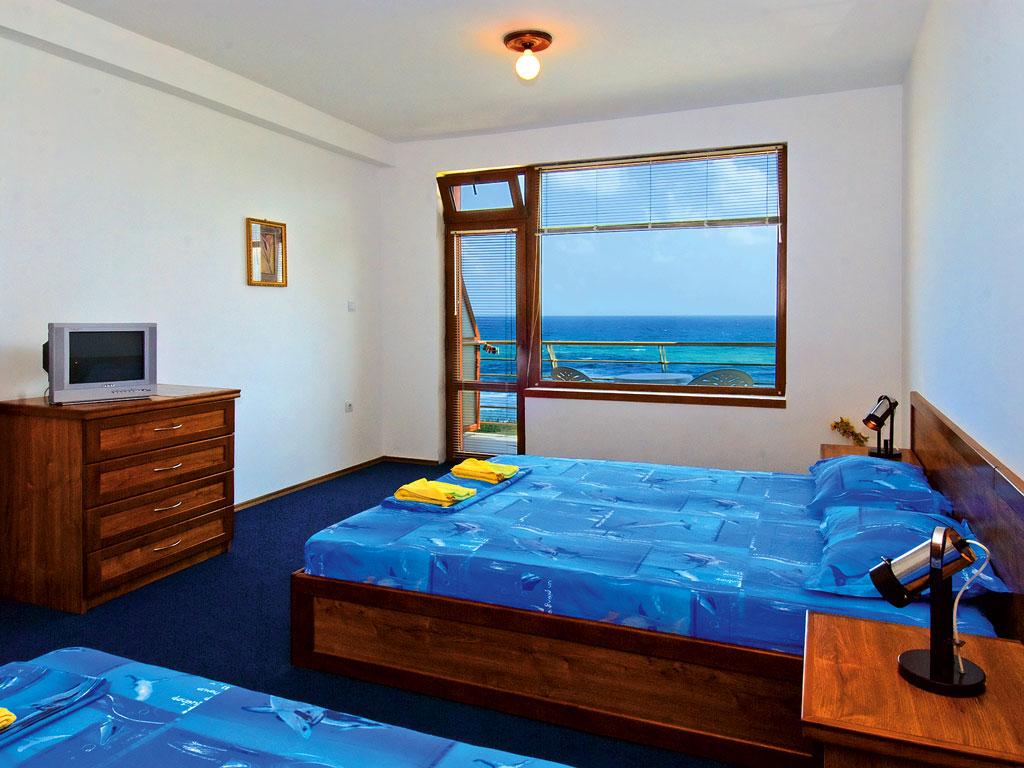 | Prostorné pokoje s balkonem a sociálním zařízením (sprcha, WC) jsou klimatizovány (klimatizace zdarma) a vybaveny TV/SAT, Wi-Fi (zdarma) a chladničkou. Možnost jedné přistýlky. Maximální obsazenost tři dospělí. |